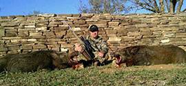 Depending on the weather, hogs can be an extremely nocturnal animal and most sightings will occur at daylight and dark. However, if they want to play the nocturnal game with us, we have motion lights set up to crash their afterdark parties! Our hog hunts are unlimited in numbers, so bring plenty of bullets. All hunts are semi guided and are 2 night 2 day packages. You arrive in camp at noon the day your hunt begins and hunt that evening. A full day of hunting is next on the agenda, followed by a morning hunt of your last day. After your last sit and your guide has taken care of your animals, you will have breakfast or brunch and depart the ranch to head home with some good stories.